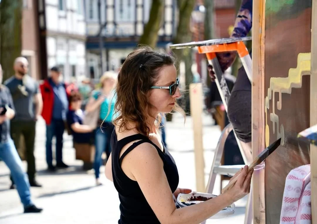 Julia Eckler beim Live Painting am Brandplatz Celle beim Street & Art Festival 2023